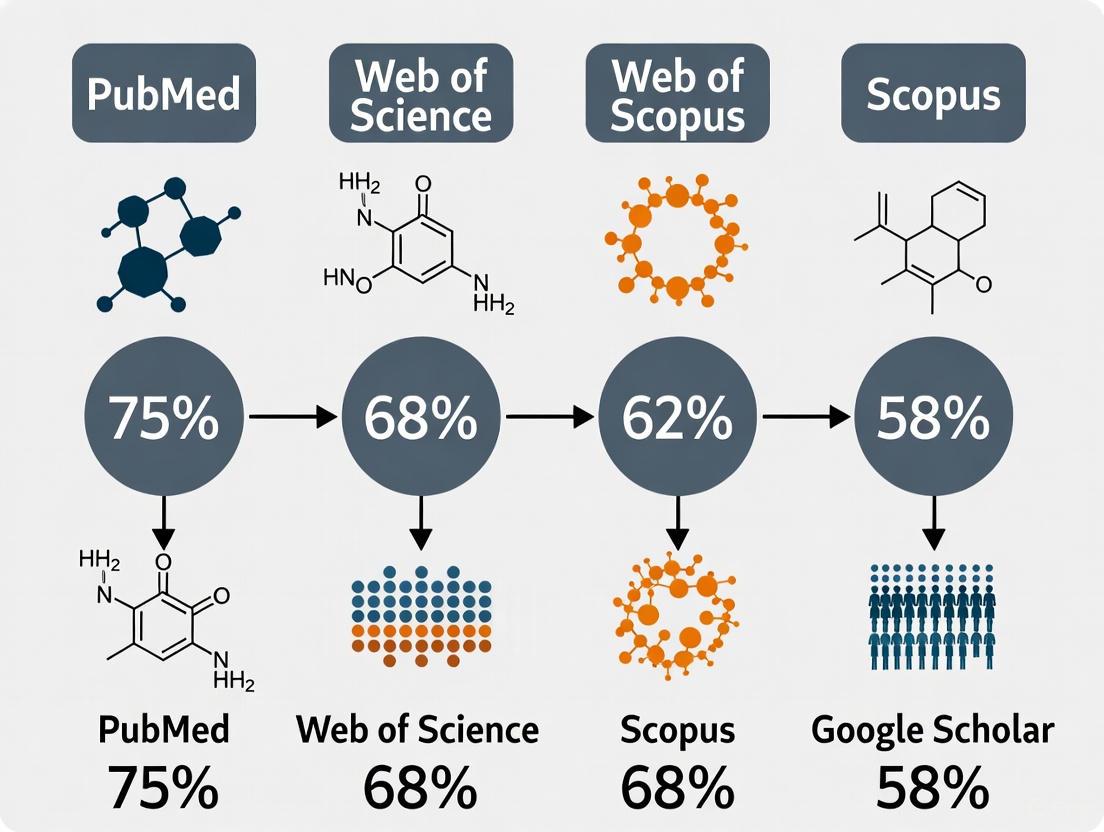 The architectural design of PubMed, Embase, Scopus, and Web of Science dictates their respective strengths and optimal use cases. PubMed, with its robust MeSH indexing and free access, remains an indispensable starting point for biomedical and clinical queries. Embase is the superior tool for comprehensive searches in pharmacology, medical devices, and for capturing European literature, often retrieving more than twice the unique citations as MEDLINE alone [14]. The broad, interdisciplinary coverage of Scopus and Web of Science makes them ideal for cross-disciplinary research and bibliometric analysis, though their selective curation policies mean relevant evidence from newer or regional journals might be missed.