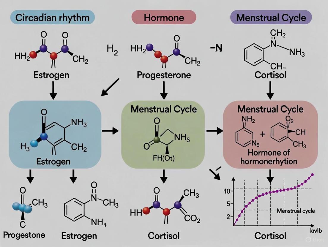 This diagram illustrates the hierarchical integration of the central circadian pacemaker with the hormonal axes governing the menstrual cycle, highlighting key nodes of potential interaction for research and therapy.