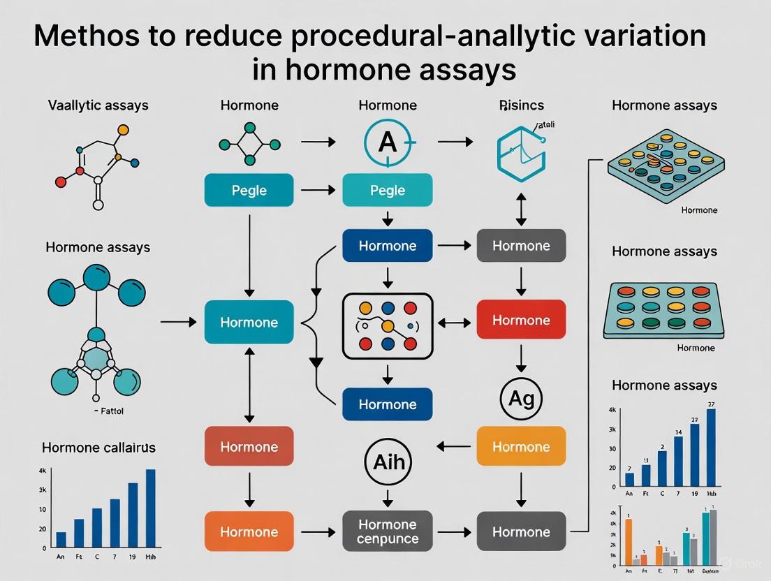 Minimizing procedural-analytic variation in hormone assays is not a single intervention but a continuous, multi-faceted endeavor that spans the entire testing lifecycle. A thorough understanding of foundational error sources enables the implementation of robust methodological controls and effective troubleshooting protocols. The future of precise hormone measurement lies in the widespread adoption of Quality-by-Design principles, the strategic integration of superior technologies like mass spectrometry, and a concerted global effort toward assay harmonization and standardization. For researchers and drug developers, embracing these strategies is paramount for generating reliable, reproducible data that accelerates scientific discovery and ensures the efficacy and safety of new endocrine therapies. The evolving landscape of AI and real-time analytics promises further breakthroughs in achieving unprecedented levels of assay precision and reliability.